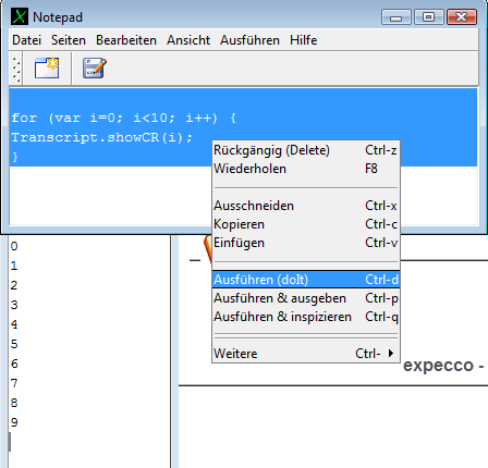 The expecco Notepad as described here is a somewhat stripped-down version of the full Smalltalk-Workspace application. It has smaller menus and less functions as the full featured version, in order to be more "beginner friendly".