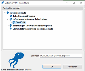 2. das Anmeldefenster wird bedient (COVID-19 angewählt).