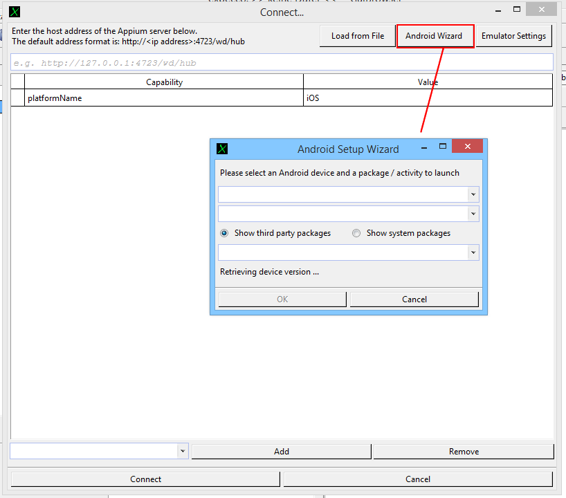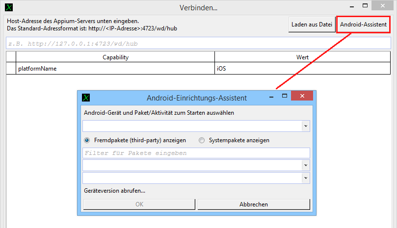 Version vom 20. Januar 2016, 15:27 Uhr von Binbasioglu (Diskussion | Beiträge) (Binbasioglu lud eine neue Version von „Datei:Appium GUI AndroidWizard.png“ hoch)
