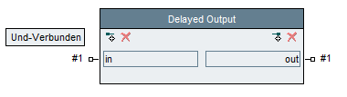 For example, the following block delays its input value for a while, then passes it on to its output: