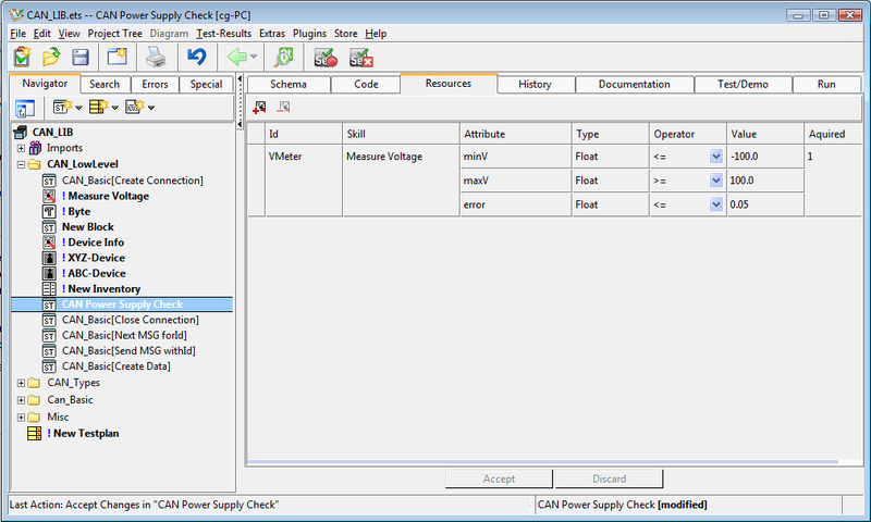 The set of required resources which the action requires for its operation is defined in this editor. This set is not described by an explicit list of required resources, but instead by a list of skills which the allocated resource(s) must have. This gives expecco the flexibility to dynamically choose among a set of available resources, and decide at execution time, which device or operator is chosen.