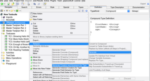 Change the template and press "Accept" to install the type. The second tab in the editor labeled "Type Description" shows the type's definition in expecco's internal type description language, which is usually only of interest to validate a type's correctness if an alien format was used to import a type definition. This format is described below .