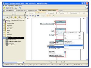 The Selenium Library wraps all Selenium functions as graphical building blocks in expecco. Thus, instead of using selenium in a textual and script-like fashion, these can now be modeled as a graphical diagram. Captured browser sessions are imported as activity diagrams of the recorded interaction steps, and further reused, re-factored or parametrized in the expecco diagram editor. It is especially possible and useful, to provide input values from other sources (databases, testdata generators etc.) or to further validate the system using direct access blocks to the database or via other access paths. In addition, partial interaction sequences can be resused, parametrized, or used in loops or alternative sequences.