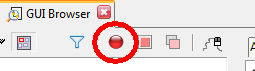 Sie starten den Recorder, indem Sie im GUI-Browser die entsprechende Verbindung auswählen und dann auf den Aufnahme-Knopf klicken. Für den Recorder öffnet sich ein neues Fenster. Die aufgezeichneten Aktionen werden im Arbeitsbereich des GUI-Browsers angelegt. Daher ist es möglich, das Aufgenommene parallel zu bearbeiten oder auch fälschlich aufgenommene Aktionen zu löschen.