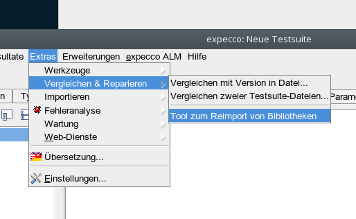 Während des Reimports muss mindestens ein expecco Browser geöffnet sein, ansonsten wird expecco verlassen und somit der Reimport abgebrochen! Der Reimport kann bisher nicht über die Kommandozeile ausgeführt werden.