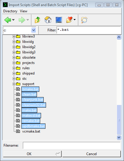 This function allows you to select a number of script files (batch or shell scripts), import them and generate an elementary action block for each.