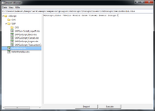 Der Quellcode angewählter Skripte wird im Vorschaufenster angezeigt und kann über das Kontextmenü des Baums (Rechtsklick auf ein Scriptfile) oder die Buttons im Vorschaufenster importiert und ausgeführt werden.