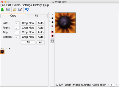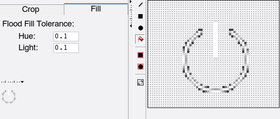 To flood-fill an area with a mask, select the "Flood-Fill" button and click on any pixel which is inside the area to be filled.