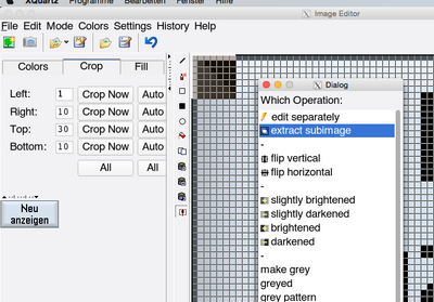 Then close this first editor, to proceed with the next step, where the top-left fencing image is defined. The editor for the top-left image opens automatically. Cut this down to a few pixels using the "Extract Subimage" function. For this, first select "Special Functions" , then select the rectangle and finally choose "Extract Subimage":